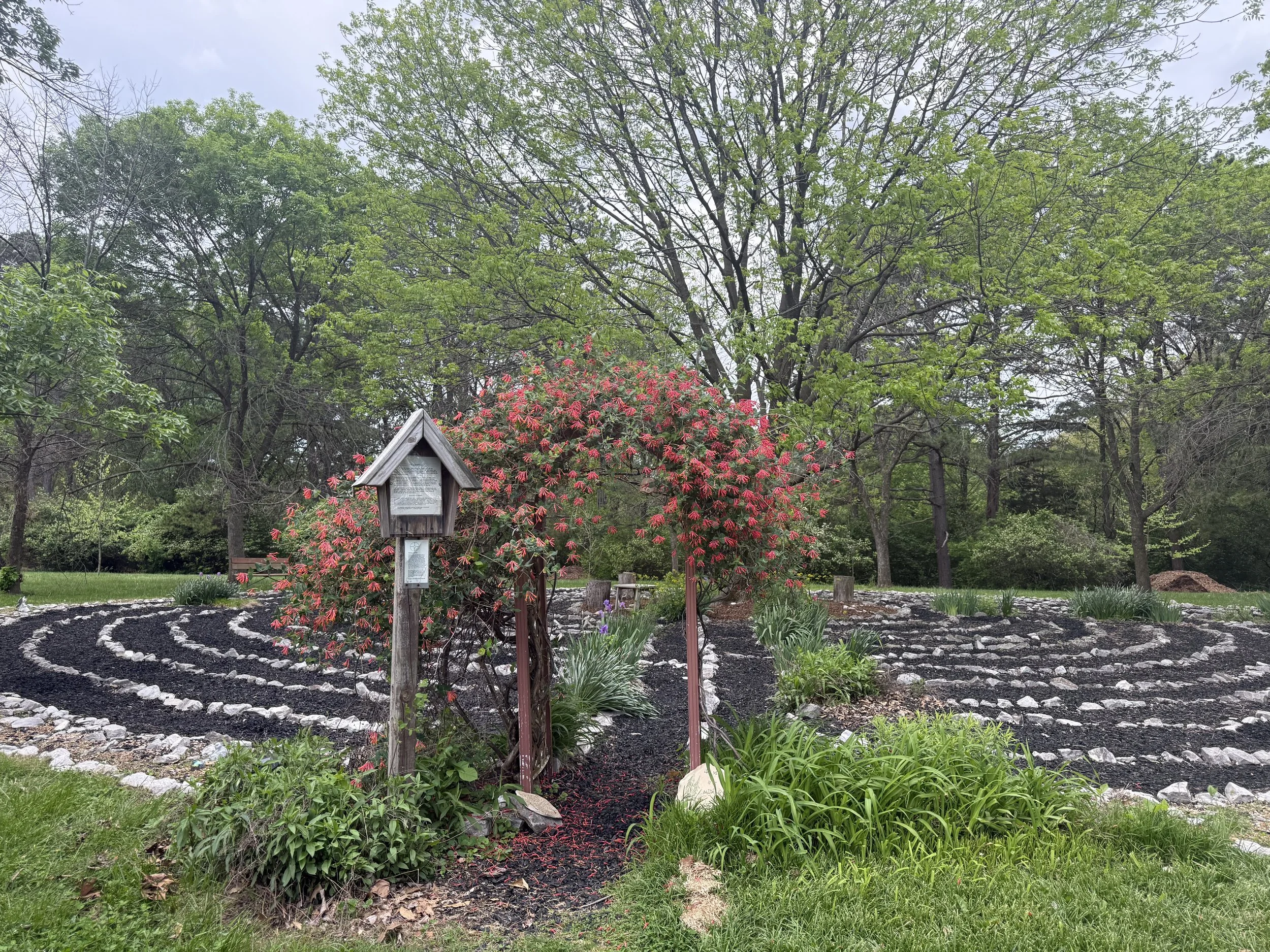 70 Acres of Quiet: Labyrinth, Cosmic Walk, grotto, and space to wander and breathe.